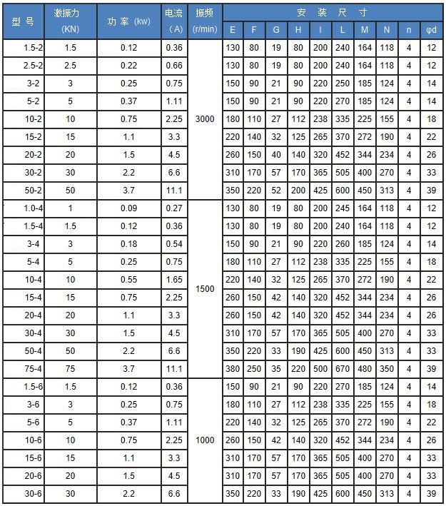 7.機種豐富,規(guī)格齊全,能滿足各類振動機械的工作需要。